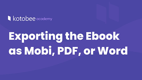 Learn how to export your ebook to Mobi, PDF, or Word.
